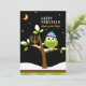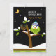 Tarjeta Festiva Lindo búho de Hanukkah y árbol nevado con menorá