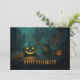 Tarjeta Festiva Lindo dragón de Halloween con calabazas espantosas