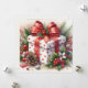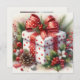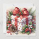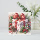 Captura el espíritu navideño con esta tarjeta de vacaciones única, cuadrada, con un bonito cuadro blanco y rojo con lunares, envuelto con un lazo de coqueta rojo y blanco con lunares, rodeado de acebo y una piña. Se proporcionan plantillas con imagen en el reverso.