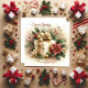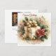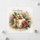 Envía una tarjeta de vacaciones única cuadrada de "Saludos de temporada" con este paquete de coqueta envuelto con un lazo dorado, rodeado de acebo y poinsettias. Todas las plantillas proporcionadas con imagen en la parte posterior.