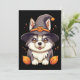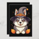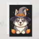 Tarjeta Festiva Lindo perro Husky con el sombrero de una bruja Ha
