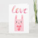 Esta divertida tarjeta de San Valentín seguramente complacerá a tu media naranja. Este diseño presenta un lindo conejo rosa sosteniendo un corazón con el texto "Amor" en la parte frontal. Dentro, el texto dice "Algún conejito te ama". Mantén esta tipografía popular o cambia el texto a tus propias palabras.