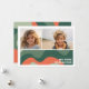 Parte Delantera - 2 Plantilla de foto en una cuadrícula simple con un borde blanco. Un patrón de arte abstracto divertido con coral y verdes y una fuente simple crean un diseño moderno y minimalista para la temporada navideña.