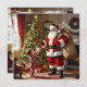 Tarjeta Festiva Little Boy Giving Santa a Gift Christmas