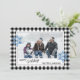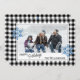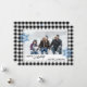 Única, clásica, moderna, bonito y decorativa tarjeta de vacaciones. Cute Happy Holidays saluda texto y habitación para personalizar o personalización con una foto, nombre de familia (o nombres individuales) y mensaje de tu elección, enmarcado por dos copos de nieve de color gris plateado sobre un elegante fondo de verificación de la toma de soplo de búfalo de color blanco y negro.