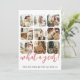 Añade tus propias doce fotos y texto a esta "¡Qué año!" detallada tarjeta de vacaciones de Ricaso - disponible en otros colores de la tienda Una sencilla y moderna tarjeta de Navidades mostrando tus fotografías favoritas, 9 al frente y 3 al fondo junto con tu propio mensaje personal.