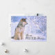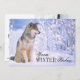 Tarjeta Festiva Lobo de madera sentado en la nieve