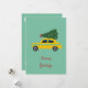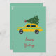 Tarjeta de vacaciones de invierno con tema de taxi amarillo para sus clientes o socios de negocios. logotipo de personalizable taxi tema de coches, empresa, vacaciones corporativas, tarjeta de Navidades.