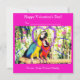 Brillante y colorido, esta divertida tarjeta de San Valentín presenta dos loritos adorables y extravagantes posados juntos en una rama. Los loritos están rodeados de vibrantes plantas tropicales y garabatos juguetones, lo que hace que la escena sea festiva y llena de amor.