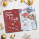 "Que tus días sean alegres y brillantes". Una divertida cita de tipografía de escritura blanca y estrella purpurina de oro contra un fondo de madera de pajar rústica roja, junto con la foto de su elección, le ayudan a inaugurar Navidades y Año Nuevo. Sienta el calor y la alegría de la temporada de vacaciones cada vez que envías esta moderna y festiva tarjeta de felicitación de fotos plana personalizada. En mi colección de tiendas "Navidades Days Be Merry & Bright" también están disponibles sobres de correspondencia y coordinación, pegatinas, giftwrap, almohadas, artículos de aseo, joyería y otros productos. ¡Envíe esto a alguien especial! Simplemente reemplace la foto de ejemplo con una de las suyas y escriba los nombres de su elección y podrá personalizar fácilmente esta tarjeta de felicitación de Navidades. Por favor, envíame cualquier pregunta o petición.