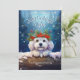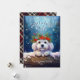 Esta adorable tarjeta de felicitación navideña incluye un ilustracion bonito de Bichon Frise con una corona festiva de flores de pino, pino y bayas, con copos de nieve que caen suavemente sobre un fondo del cielo azul. ¡El pequeño perro de Bichon Frise está asomando por el tronco nevado para saludar! El lúdico texto "Jolly Holiday Wishes" agrega un cálido saludo estacional, y puede ser personalizado como quieras. El reverso está decorado con un clásico rayo de chapa que añade un toque tradicional al conjunto. Esta bonita y divertida tarjeta es perfecta para enviar vítores de vacaciones a la familia y amigos, y el nombre del personalizable y la fecha lo convierten en un placer personalizado.