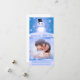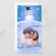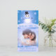 Personalizar esta adorable tarjeta fotográfica "Primer Navidad del bebé" con su propia foto y nombre de bebé! El diseño presenta a un lindo nevado con un sombrero superior, mejillas rosadas y una bufanda azul. Los copos de nieve le dan un toque original a la bodega.