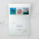 Una diversión, un juego tropical en los "saludos de la estación" con las palabras "mares Y los saludos" en tipografía moderna, elegante de la escritura de la voluta en los colores subacuáticos tranquilos acentuados con las estrellas de mar contra aguamarina diagonal/fondo rayado diagonal verde azulado. ¡Esta tarjeta acuática de la foto del saludo del día de fiesta de la acuarela temáticamente coordina con su playa, travesía, océano, navegación, vacaciones tropicales, practicando surf, el equipo de submarinismo o las fotos o usted que bucean están enviando deseos de su ubicación casera tropical o usted apenas ama el MAR! Esta tarjeta no tradicional del día de fiesta se destacará entre sus saludos del día de fiesta con una mirada del océano/de la playa. El interior de la tarjeta exhibe tres fotos adicionales y las rayas silenciadas de la aguamarina y más estrellas de mar.