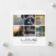 A heartwarming design featuring the word “love” above six photo spaces that celebrate the special bond between a person and their dog. Below, “The Carter Family” adds a warm, family-centered touch. Perfect for showcasing cherished memories and pet companionship in a clean, modern layout. All text and photos can be edited to reflect your own family name and favorite moments.