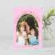 Modern and elegant Valentine's Day photo template card featuring an arch framed photo with a text around it that says "Love Grows Here" with hearts. You can add another picture and a message on the back of the card. Orange pink.