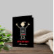 A minimalist black birthday card featuring a low-battery stick figure that’s still going strong.