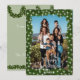 Las ramas de pino verde con luces de destellos falsas enmarcan esta tarjeta de vacaciones de foto para hacerla adorablemente exagerada con tipografía de "Feliz Navidad" y fecha en la parte frontal y espacio en el reverso para tu sentimiento navideño personal y el nombre de tu familia para todos tus seres queridos.