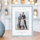 Comparta saludos de vacaciones con estas modernas y elegantes tarjetas de fotos de Hanukkah con su juego de fotos favorito sobre un fondo de copos de nieve y ramas de invierno en blanco sobre azul pálido helado. Un área de mensajes editable le permite personalizar su Chanukah o saludo de vacaciones. Añada el nombre de su familia o nombres debajo, junto con el año.