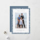 Comparta saludos de vacaciones con estas modernas y elegantes tarjetas de fotos de Hanukkah con su juego de fotos favorito sobre un fondo de copos de nieve y ramas de invierno en blanco sobre azul medio de pizarra. Un área de mensajes editable le permite personalizar su Chanukah o saludo de vacaciones. Añada el nombre de su familia o nombres debajo, junto con el año.
