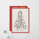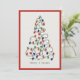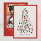 Elegante tarjeta de felicitación de vacaciones plana inspirada en la luz vintage. Las luces de época siempre han sido una de las favoritas para compartir alegría y hacer que la temporada navideña sea "Merry & Bright". La tarjeta presenta un gráfico árbol de Navidad compuesto por una cadena de luz vintage entrelazada. Las tradicionales luces multicolores influyen en los detalles de las tarjetas, dictando principalmente la gama de colores de fondo - rojo, verde, naranja. Foto destacada (marcador de posición a reemplazar), mensaje de vacaciones personalizable y firma. ¡Te deseamos las vacaciones más felices!