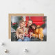 Una toma elegante y moderna de una tarjeta de saludo navideña de estilo casero. La tarjeta de foto de sangrado completo presenta una foto favorita con un diseño de superposición de tipografía serif "alegre" único y caprichoso que tiene acentos de estrellas y luces centelleantes. Personalice el texto personalizado con el año, su saludo de vacaciones preferido y su familia o nombre. Un borde dibujado a mano enmarca hermosamente el diseño. Un patrón de estrella centelleante coordinado adorna la parte posterior de la tarjeta. Tenga en cuenta que los colores blanco neutro y marrón arena / bronceado se pueden cambiar para coordinar con su imagen.