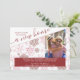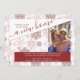 Tarjeta de invitación móvil de vacaciones con foto vertical, su nueva dirección y saludo personalizado. Diseño de copos de nieve rojos y rosas con un guión elegante y con letras "hay un lugar de nieve como un nuevo hogar... seguido de tu texto personalizado. Un diseño sencillo y minimalista elegante con una divertida redacción festiva para que todos sepan su nueva dirección. Si tiene algún problema con la colocación de la imagen, intente recortar al formato vertical antes de cargar.