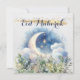Desea a tus familiares y amigos Eid Mubarak este año con esta hermosa tarjeta de vacaciones. Con arte de acuarela, una luna creciente ascendente y follaje verde con eucalipto y otra vegetación floral. Los acentos de purpurina dorada hacen que esta tarjeta sea especial. Tipografía de letra elegante.