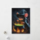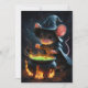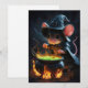Una cálida y detallada ilustración de un diminuto ratón vestido de mago. La figura lleva un sombrero puntiagudo demasiado grande con una hebilla y una capa oscura, lo que le da un aspecto encantador. El ratón revuelve con atención un caldero negro con cucharas de madera, haciendo burbujear una poción mágica de un brillante color verde. La escena está iluminada por el resplandor de un fuego que arde debajo del caldero, creando una atmósfera acogedora y misteriosa. Las texturas realistas de la piel, el humo y el fuego hacen que la obra de arte parezca una escena de una película de animación de gran presupuesto. Es una imagen llena de magia y fantasía infantil que hará que se te dibuje una sonrisa en el rostro.
