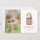 Ilustración de malteada de chocolate en frasco de mason adornada con sprinkles, chispas de chocolate, salsa de chocolate, caramelo, galleta de Navidad con copo de nieve y hombre de nieve de malvavisco. El texto dice, "deseándote una dulce temporada navideña" Personaliza el nombre, año y foto.