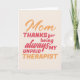 Tarjeta del Día de la Madre con cita humorística 'Gracias por ser siempre mi terapeuta no pagada'. El texto está en tipografía moderna y negrita roja y naranja.