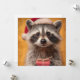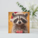 Tarjeta Festiva Mapache Adorable con Sombrero de Santa Sosteniendo
