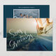 Tarjeta de Navidad de Vela de Temporada de Fiestas de Mares y Saludos. ¡Es la temporada para salir a navegar! Envíe esta tarjeta de vacaciones náuticas a todos sus amigos que navegan o practican yate para desearles una Feliz Navidad. Agregue su foto familiar favorita en la parte posterior de la tarjeta y personalice el mensaje de temporada a su gusto. Cielos despejados y navegación suave.