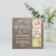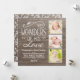 La tarjeta multifoto estilo rústico de vacaciones cuenta con un diseño de tipografía decorativo blanco "Maravillas de su amor" con acentos de diseño de desplazamiento y texto personalizado sobre un fondo de madera gris / marrón. Personaliza tus tres (3) fotos favoritas. En la parte posterior de la tarjeta plana aparece un patrón floral arbolado sobre la textura de grano de madera.