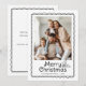 Envía tus felicitaciones navideñas con esta tarjeta de Navidad con foto caprichosa que incluye acentos de garabatos negros. El marco es de escallop y el mensaje "Feliz Navidad" está acentuado con acebo de invierno y bayas. La parte posterior ofrece texto personalizado para que agregues tu propio mensaje personal.