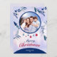 Tarjeta Festiva Marco de foto floral azul marino botánico | Navida