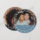 Esta tarjeta de foto elegante y moderna se duplica como un adorno de árbol de Navidad. Simplemente haz un agujero en el círculo superior del diseño. Luego pasa una cinta por el agujero y átala en un lazo. El bloque de color en la parte inferior se puede personalizar a cualquier color que desees (mostrado en azul polvoriento). La parte trasera de la tarjeta contiene otra plantilla de foto (a sangre), con un marco superpuesto de puntos blancos coincidentes. Por favor, contacta conmigo (Tracey) en orabellaprints@outlook.com para consultas sobre el diseño o el producto.