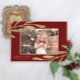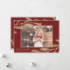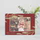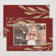 Rojo elegante y festivo con marco de oro falso y tarjeta de foto de hojas botánicas.