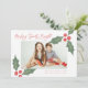 Tarjeta Festiva Marco fotográfico moderno de Holly Berries dibujad