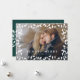 Sencilla y elegante tarjeta fotográfica navideña encuadra tu foto horizontal con un borde de hojas y bayas blancas. Personaliza con un Navidad o un saludo de vacaciones (mostrado con "siempre alegre") y tus nombres debajo. Añada una foto adicional en la parte de atrás sobre un fondo verde de caza festivo con una franja de follaje hueco a juego.