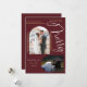 Tarjeta de Navidad con 2 fotos Married & Merry. El diseño presenta 2 marcos de fotos con líneas verticales doradas para mostrar tus fotos especiales de boda,