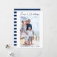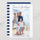 Elegancia Minimalista moderna caligrafía Lápiz manuscrito Mares y saludos Foto Tarjeta de vacaciones a rayas - Texto azul marino