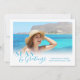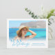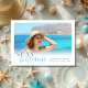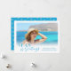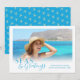 Desde la Navidad en la playa hasta tus vacaciones costeras favoritas, esta tarjeta de “Mares y Saludos” es una forma divertida de desear a amigos y familiares una Feliz Navidad tropical. Cuenta con tu foto de playa favorita, saludo personalizado y nombre. La parte trasera de la tarjeta tiene un patrón de estrellas de mar en un fondo azul aqua.