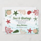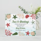 Envíe saludos de vacaciones a la familia y amigos con esta elegante tarjeta de vacaciones costeras. El diseño presenta un diseño de acuarela submarina y conchas multicolor, junto con su nombre y saludo personalizado personalizado. Disponible en diseños rojos, azules o verdes. Diseño ©Rosalind Moore