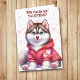 Tarjeta Festiva Marioneta siberiana en Sweater Valentine