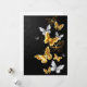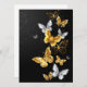 Oro, joyas y mariposas blancas sobre fondo negro. Mariposa dorada.