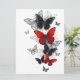 Tarjeta Festiva Mariposas Morpho voladoras negras y rojas