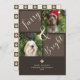 Presentamos la tarjeta de vacaciones Furry and Bright Brown 2 Photo Dog - la manera perfecta para que los amantes de las mascotas envíen saludos festivos! La parte delantera muestra dos ranuras para fotos de personalizable para caracterizar a los perros, con un elegante texto de guión que explica "Furry & Bright" para un toque de encanto estacional. La parte posterior presenta un diseño de papel de madera de color marrón y crema, que añade un toque único. Ideal para los padres de los perros, esta tarjeta es totalmente personalizable para incluir a tus amigos peludos, ¡por lo que es un placer especial para las vacaciones! Happy Ann Designs 2024.