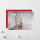 ¡Más alegría este año! Si sus Navidades son mucho más felices este año que antes, esta es la tarjeta de vacaciones perfecta para usted. Con una foto y un divertido texto lúdico en blanco, esta tarjeta de fotos de Navidad es una gran manera de presentar a tu familia y enviar saludos de vacaciones. Hay mucho espacio para que el texto del personalizado lo use como anuncio de parto de vacaciones o invitación de embarazo de Navidades. El respaldo rojo está salpicado de estrellas y puntos a juego. Otros colores y estilos disponibles para tu linda foto!