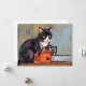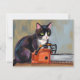 Tarjeta de vacaciones de Masacre divertida de gato esmoquin de Texas con motosierra para Halloween