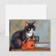 Tarjeta Festiva Masacre divertida de gato esmoquin de Texas con mo